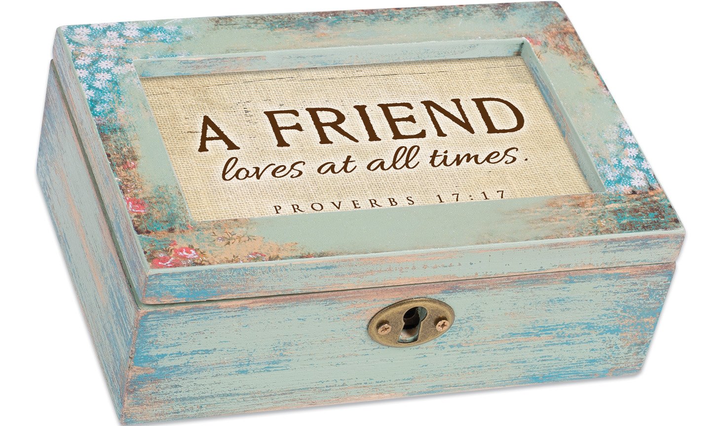 Cottage Garden A Friend Loves at All Times Distressed Wood Jewelry Music Box Plays Tune We Have a Friend in Jesus
