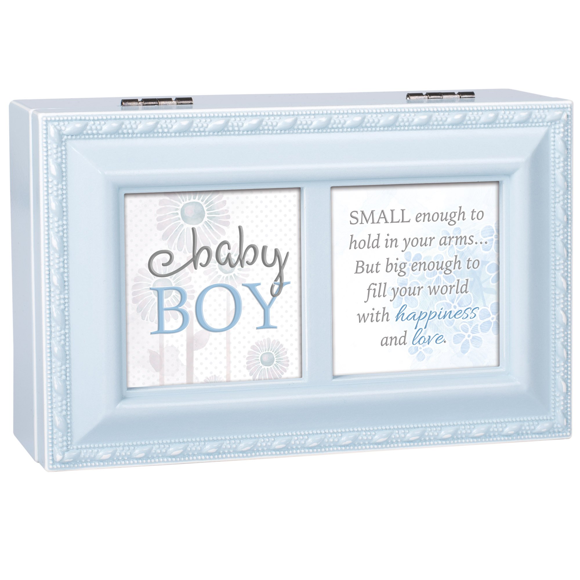 Cottage Garden Baby Boy Small Enough to Hold Matte Blue Jewelry Music Box Plays Brahms's Lullaby