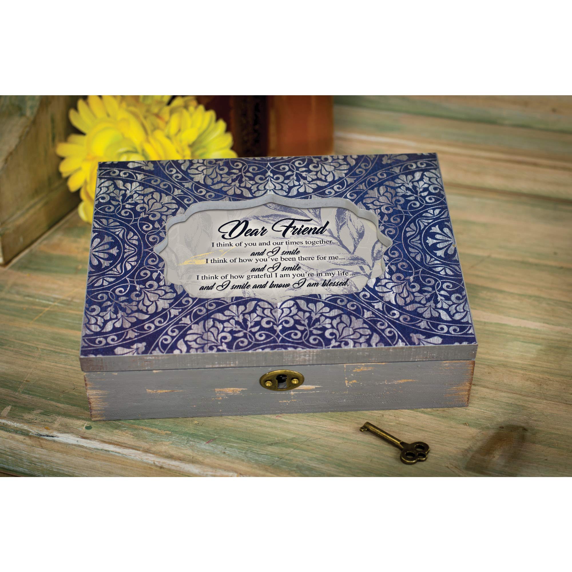 Cottage Garden Friend I Smile Know I Am Blessed Denim Decoupage Music Box Plays That's What Friends are for