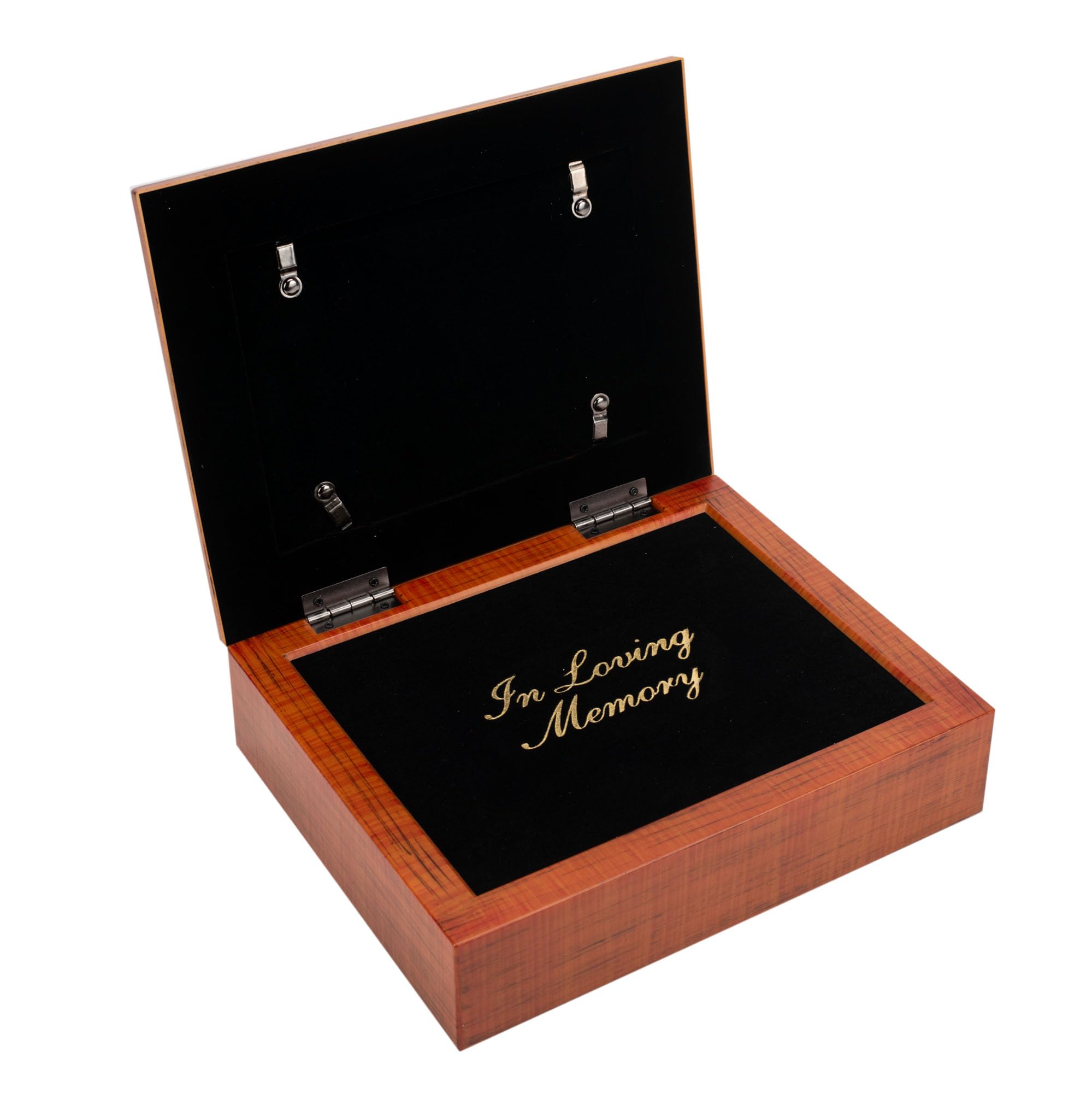 - This urn box is a beautiful resting place for ashes of a loved one; When lid is opened, the box shows a black panel engraved in gold with: In Loving Memory; Art print features Revelation 21:4: And God will wipe away every tear from their eyes; There shall be no more death, nor sorrow, nor crying. There shall be no more pain, for the former things have passed away