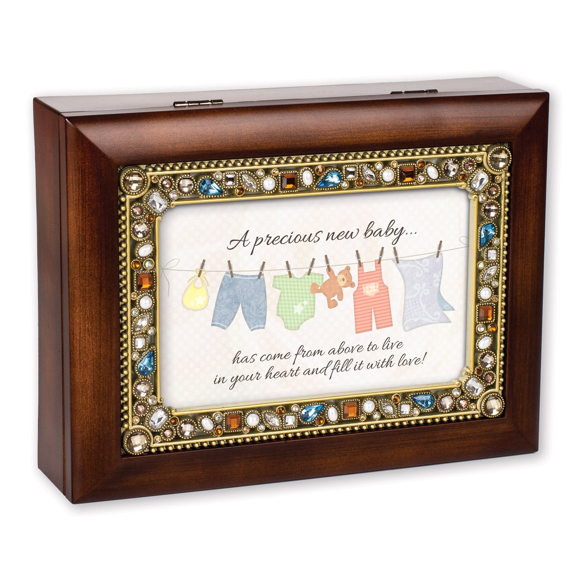 Cottage Garden Precious New Baby from Above Woodgrain Jewelry Music Box Plays You Light Up My Life
