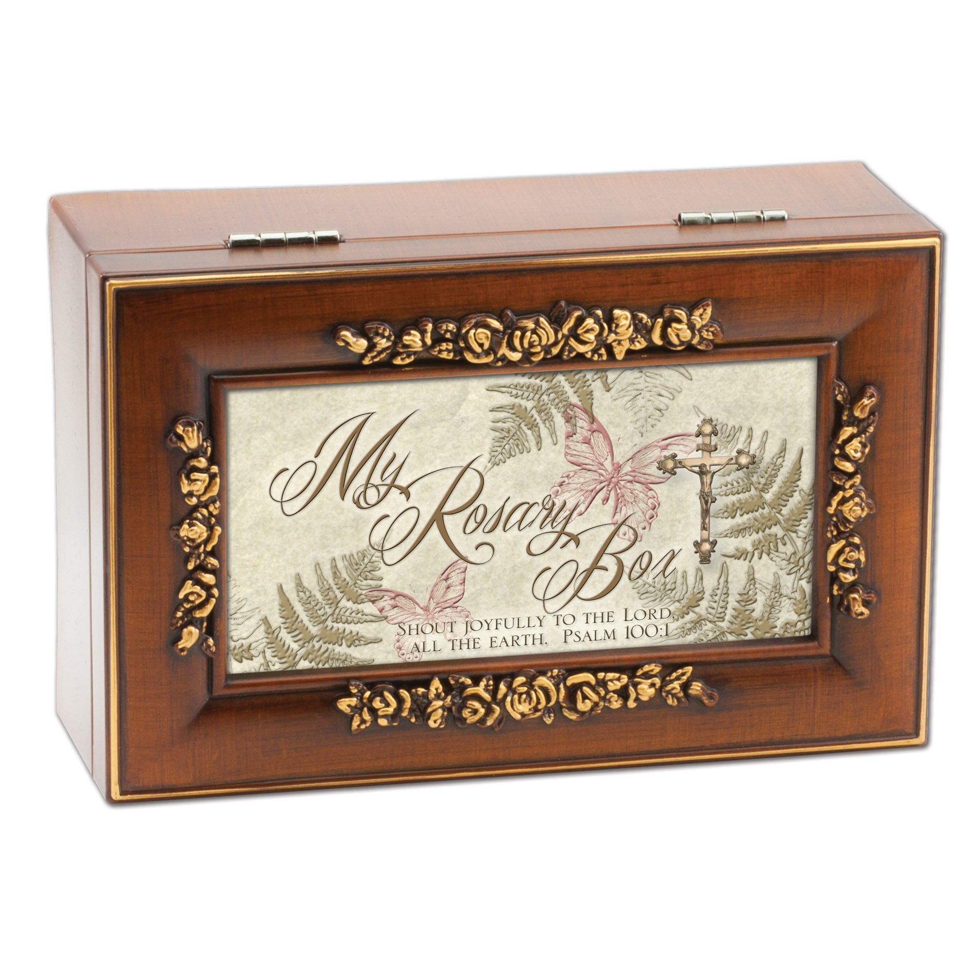 Cottage Garden Rosary Box Woodgrain Embossed Jewelry Music Box Plays Ave Maria